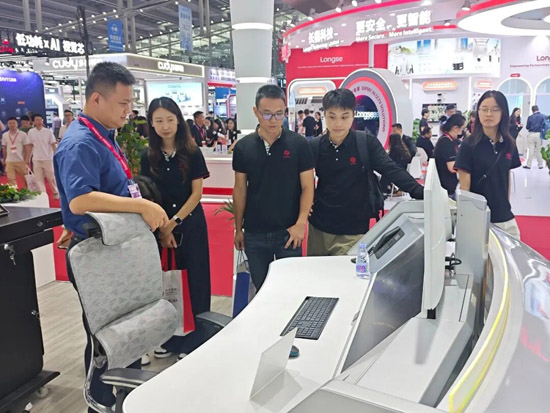 深圳安博会第三天,1号馆1T17展位,照彰持续围绕安全城市、智慧交通和数据中心等领域,推介控制台、机柜和讲台等产品,凭借创新实践推动各领域的数字化建设。在安防领域,作为全球领先的控制台定制服务商,照彰带来指挥控制中心解决方案,助力企业构建可实现智能互联、高效办公的现代化指挥控制中心。