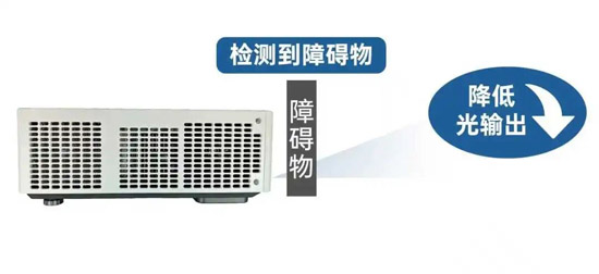 当检测到镜头前方有遮挡时,投影机将自动减少光输出,以此来降低热量,避免了镜头在被遮挡时热量过高而可能造成的不良影响。同时,投影画面上也将显示警告信息,及时提醒人们出现了镜头遮挡,要进行相应的处理移除遮挡物。而当投影机检测到障碍物被移除后,光输出则将自动恢复正常,继续呈现高质量的投影影像。