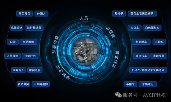 基于深度学习技术,魅视AiVC灵境智瞳算析平台内的AI图像大模型识别类目几乎包含了城市管理中的高频搜索场景。无论是常见的人物行为、车辆类型,还是各种复杂的场景元素、特定物品,都能高效进行图像识别、分类、检测和分析,可广泛应用于工业、金融、教育、能源、水利等领域的安全防范。