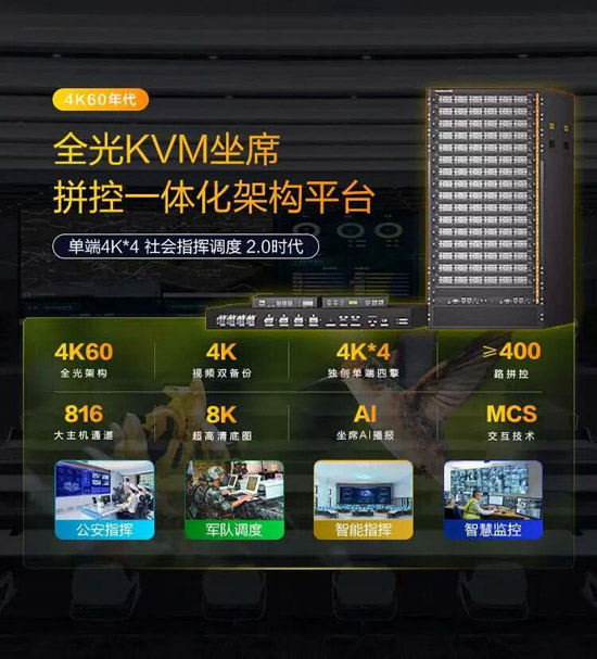 关键词: MediaComm美凯、4K60全光KVM坐席拼控一体化架构平台