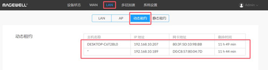 将设备接入Pro Router One的LAN口,在路由器WebUI的“LAN-动态租约”中确认其IP地址(如192.168.10.189)