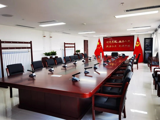 ● 各个会议室主扩音箱均采用线性音柱,从而实现更好的声音效果;同时使用吸顶音箱作为辅助扩声,使会议室声场均匀,有效减少啸叫产生机率;