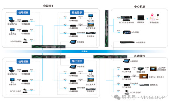 - VINGLOOP将提供面向 NDI 场景优化的高性能交换网络与全网管理平台,保障大规模媒体流在复杂网络中的稳定、高效与可控传输。