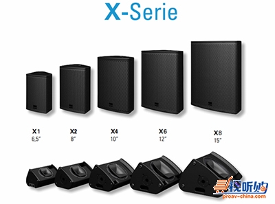 X系列拥有5个型号,分别是X1(6.5")、X2(8")、X4(10")、X6(12")和X8(15"),所有型号在用作舞台监听时X系列出色的频率响应能让系统获得最大的反馈前增益,而且X系列有着极高的输出声压,能让表演者获得理想的声音动态。除了舞台返送,X系列还是一个多面手,能应用在大多数场合的主扩声里,专利的MultiRigg™吊挂系统能让X系列扬声器极为简单地水平或垂直安装,满足固定安装集成商的需求。制造商称X系列可以和SEEBURG acoustic line任何一款超低频搭配,以获得更宽的音频响应。