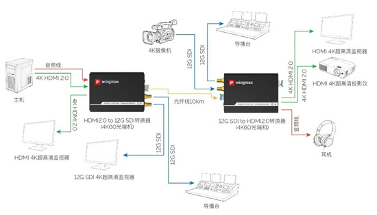 12G SDI to HDMI2.0(4K60)光纤链路应用拓扑图