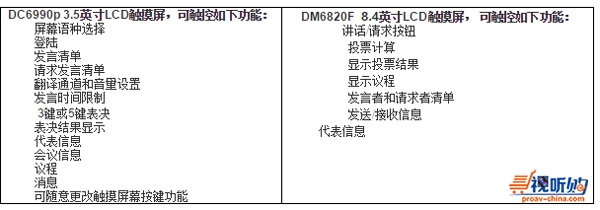 DIS展区中有两款带触摸屏的会议单元,拥有3.5英寸LCD触摸屏的DC6990p主席/代表二合一单元和8.4英寸触摸屏的DM6820F代表单元。DM6820F原为DIS厂家为丹麦国会特别定制开发,这款触摸屏单元拥有8.4英寸的触摸屏、扬声器和XLR接口,可接DIS鹅颈麦克风使用。DM6820F 单元可与SW6000、mini PC或瘦客户端/服务器 结合应用,用户用手指操作8.4英寸的触摸屏,就可完美体验会议软件操作,并享受整合入IT系统后的强大的会议系统功能。