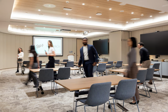 GPT集团灵活办公空间技术经理Camden Webb表示:“大型协作空间的核心在于灵活。传统音视频设备常置于桌面或桌下,这极大限制了家具移动,进而影响空间使用效率。在设计威廉街181号时,我们既要实现设备的无缝连接,又要支持灵活布局。无论是剧院式、董事会议式还是研讨会布局,用户都能获得一致的高品质体验。"