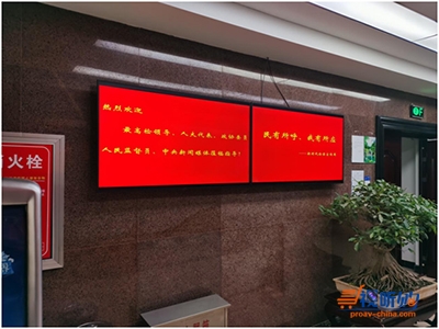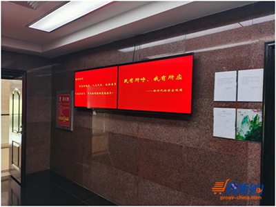该方案以挂装方式搭建在检察院廊道上,成功打造“智慧宣传”信息墙。通过CMS2.0信息发布系统结合55F1数字标牌,不仅可实时呈现政策资讯及党建风采,还能够通过微调分屏,实现多种分屏方式按需设定,进一步将政府工作报告、党建政务及宣传口号、当地重大新闻等信息同步呈现。