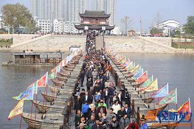 享有“千年古镇、清风商埠、佛教圣地”美誉的佛堂镇是浙江四大古镇之一,在今年的“十月十”民俗文化节中,佛堂镇打造了一场“佛堂古镇万善浮桥3D灯光投影秀”。目前该投影秀已经成为佛堂镇的固定演出节目,每周会进行两次演出,是佛堂镇“文旅兴镇”计划的亮点项目。