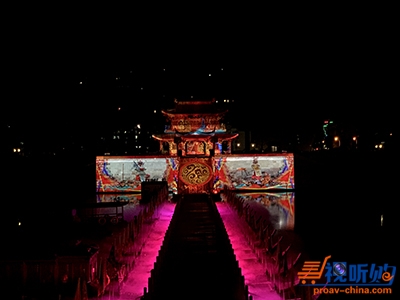 在该项目中,投影机安装前后跨度170米,楼阁、堤岸、浮桥三处主要投影画面的同步播放与高质画面播放很有挑战,赢康采用7thSense媒体服务器与Alcorn娱乐播控系统,分布江两岸进行同步播放与控制,并经过设计师精心的调试,让投影演出得以无损、精准、同步播放。