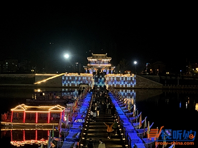 夜幕下,精彩的投影演出深深吸引住了来往游客,人们在热闹了一天的古镇上,终于静下来,欣赏这场流光溢彩、美轮美奂的投影演出,感受这座千年古镇独有的魅力与文化。
