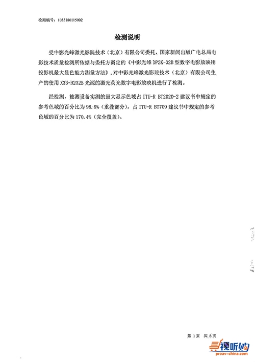 关于亮度已经不用多说,目前ALPD技术已经可以实现55,000流明高亮度,基本实现目前激光荧光领域,乃至激光放映领域的最高亮度,目前该款产品已经经过国家新闻出版广电总局电影技术质量检测所的检测,且荣获了第十届中国电影电视技术学会科技进步奖一等奖,目前已经投入商用。