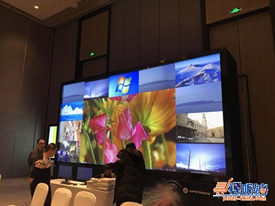 光峰所展示的这套4K激光大屏,采用全球唯一的超大散射背投屏技术,极大的可视视角(水平178°,垂直178°),高分辨率高对比度,真实还原色彩和生动文本图像的动态视觉效果,灵活多变的安装形式,快捷免维护,节约大范围安装空间,画面尺寸不受限制,大面积安装优势明显,同时在异形显示时亦灵活实现。