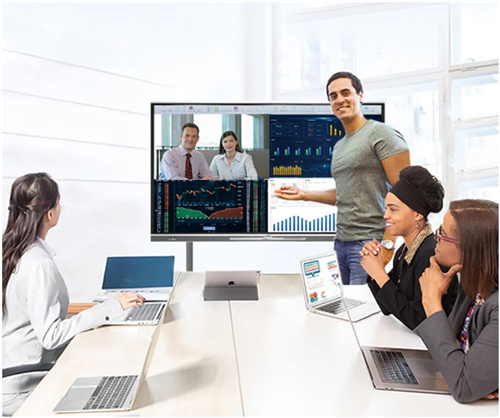 召开一场会议时,客户已经在看表摇头,而你依旧在手忙脚乱地连接各种设备?展开头脑风暴时,部门人员个个文思泉涌,却发现传统白板根本不够用,只能先擦除一部分原先的笔记?利用投影设备进行会议投屏展示时,无奈发现投影画面不够清晰太暗淡,看起来很吃力,体验非常不好?多人异地视频沟通时,只能借助传统通讯手段,经常会出现网路卡顿等现象,影响远程协作效率?