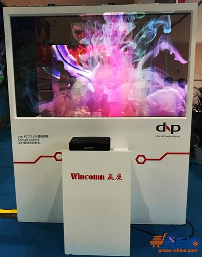 在现场我们还展出了dnp最新透明屏幕,它以别致新颖的设计引得参观者纷纷驻足围观。这款透明屏幕尺寸为80英寸,16:9,是一款透明清晰高对比度正投屏幕。应用灵活,在有框架或无框架情况下均可用,设计紧凑,节省空间,且容易清洗,可与dnp激光超短焦投影机配套使用,是商业或零售场合的首选产品。内置半反射微型菲涅耳透镜,是一种坚固耐用的树脂屏幕。屏幕抗环境光,无需专门的暗室,因此即使在明亮的灯光下也能保证观看质量。