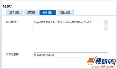 2.从八百里流媒体高清直播系统中获取发布地址和流名称填入编码器配置页面。
