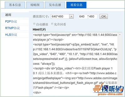 3.流媒体点播直播高清系统(800Li Media Server)给出HTML代码以嵌入前端网页。