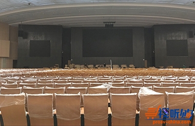 泰州国际博览中心——泰州国家医药高新技术产业开发区直属机构,会展交易功能区的载体,总用地面积约190亩。中心的多功能厅有一千多平方米,可容纳三千多人,具有会议,演出等各类演出功能。由于场地宏大,而且场馆成扇形分布,容易产生声聚焦,造成很严重的混响。