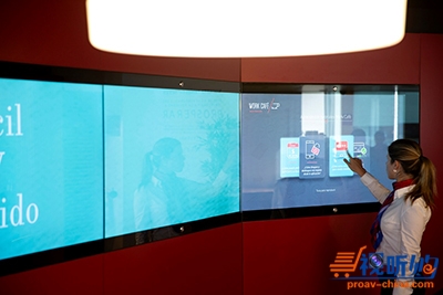 交互视频墙是每家WorkCafé的基本元素。该墙由4台55英寸显示屏组成,可以呈现涵盖新闻、经济统计、Santander宣传资料等方面的信息。这些显示屏的特点之一是安装了对角为55英寸的Zytronic触控传感器,通过钢化防护玻璃面板实现触摸功能。