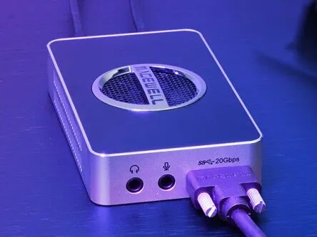 支持高速率的接口旁通常标有“20Gbps”、“10Gbps”等标识,如美乐威USB Capture HDMI/SDI 4K Pro采集卡USB 3.2 Gen2x2接口附近有“20Gbps”标识。