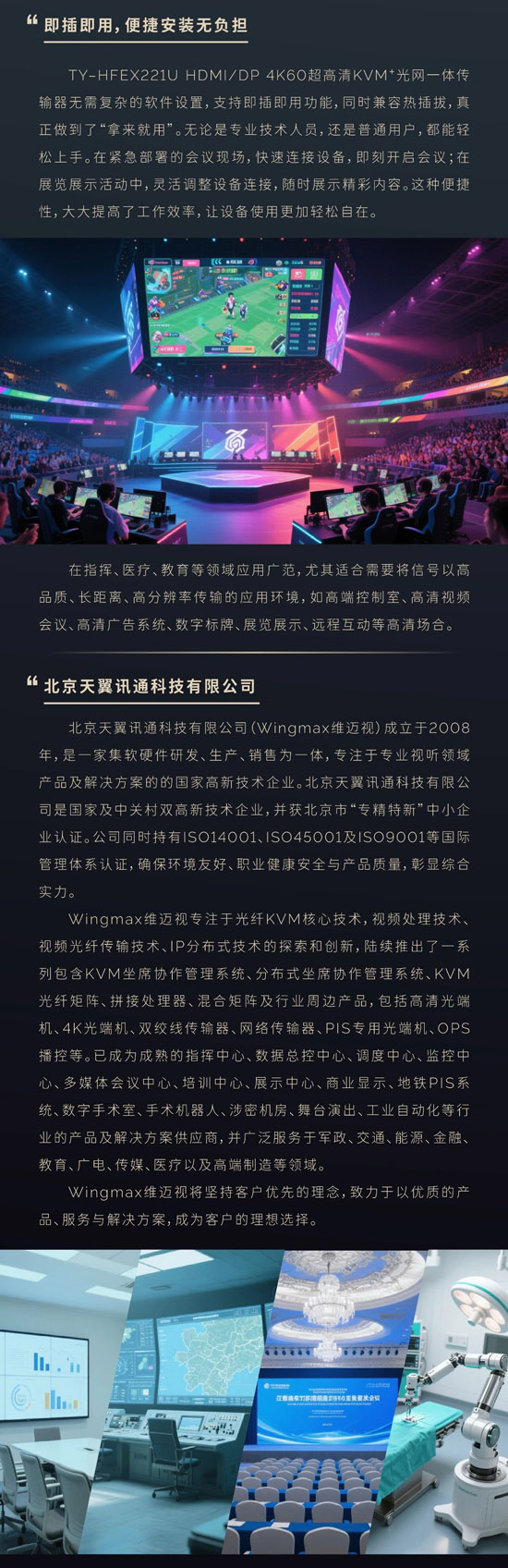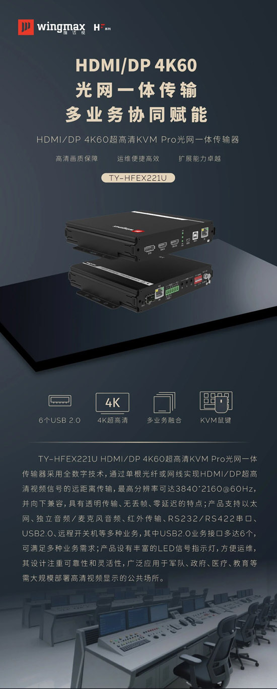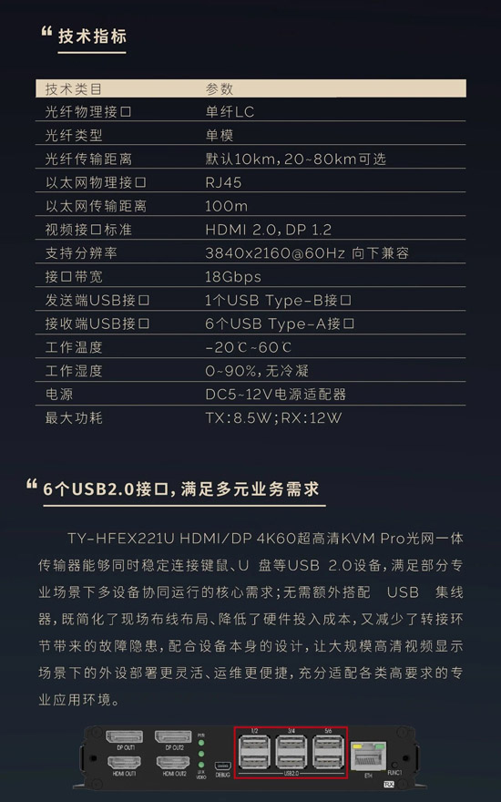 关键词: 天翼讯通、HDMI/DP 4K60超高清、KVM Pro光网一体传输器