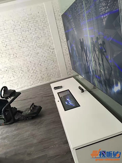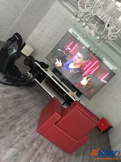 还有,留意到画面左手边的黑色家伙吗?那是客户专门搭配的一款开车游戏机。会玩!坐在游戏机上面,享受着100英寸的巨大画面,似乎风驰电掣的刺激即将到来,Ready? Go!