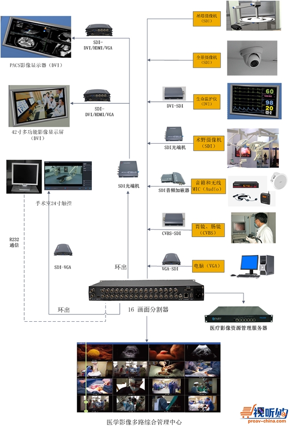 16画面分割器MVP9116/MVP9216在数字化医疗图像综合管理系统中的应用拓朴图