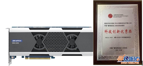 研华 8路 4K HEVC/AVC实时编转码卡VEGA-3318荣获中国广播电视设备工业协会科技创新优秀奖、实时4K/FHD视频编解码平台 VEGA-6311荣获创新奖及研华专业视频影像事业部副总经理林盈志先生荣获中国广播电视设备工业协会科技创新个人奖。