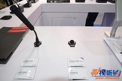 鐵三角的ATUC-50全数字会议系统一直以来提供优质会议音响解决方案,这次在北京IFC展会中采用模拟会议桌的场景设计,更直观的展示更多类型嵌入式席位会议解决方案,ATU-50IU嵌入式数字集成系统是一套由微型处理器结构,采用精巧坚固的金属外壳,设有固定安装孔,能用于安装在桌子下方,或位于高架地板下,以及椅子扶手之间或任何其他隐藏的地方,可配置多种铁三角嵌入式会议话筒座。