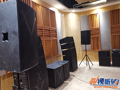 听音室内用2只内置三分频全频音箱、1只18吋低音箱听音,分频点83Hz