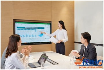 放办公区中,三四个年轻人正聚拢在一台newline会议平板周围,一边讨论一边在大屏上勾画标注;几十米外正在举行一场小型发布会,产品经理正用newline会议平板向记者和客户介绍新产品;旁边的会议室中,四五个同事正通过newline会议平板与世界另一端的投资人进行视频会议……这是中盈地产智慧办公空间平常的一天。