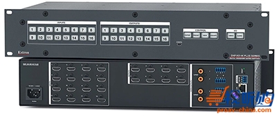 Extron DXP HD 4K PLUS 系列是高性能的 HDMI 矩阵切换器,适用于分辨率高达 4K/60、带 4:4:4 色度取样的计算机和视频信号。它们支持 HDMI 2.0b 参数标准,包括高达 18 Gbps 的数据速率、高达 12 位的色深、3D 和高清无损的音频格式。这些符合 HDCP 2.2 标准的矩阵切换器采用的 Extron 技术包括 SpeedSwitch®、EDID 管理器 (EDID Minder®) 和密钥管理器 (Key Minder®),以及 HDMI 输入均衡和输出时钟恢复,能确保可靠的系统操作。为了简化集成,可将任一输入的数字音频进行解嵌,通过数字或模拟立体声端口输出。DXP HD 4K PLUS 系列提供从 4x2 至 16x16 的固定输入/输出尺寸,非常适用于需要对 4K/60 HDMI 视频和音频信号进行可靠、高性能的矩阵切换的应用环境。