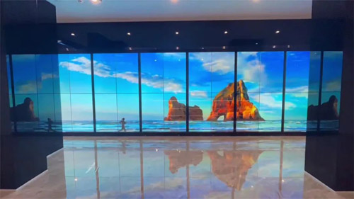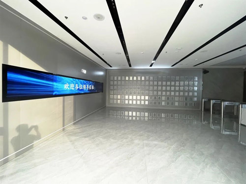 首先,是针对大厅入口的显示系统完成了升级改造工作,通过OLED透明拼屏搭建显示系统,确保每个显示屏的无缝拼接和精准对齐,并对显示屏的画面进行调整校准,最终确保显示系统内容流畅精准,画面精美清晰,从视觉层面来看,显示系统带来了令人惊艳的效果,与整体空间实现了和谐统一,营造出浓厚的科技感与智能感氛围。