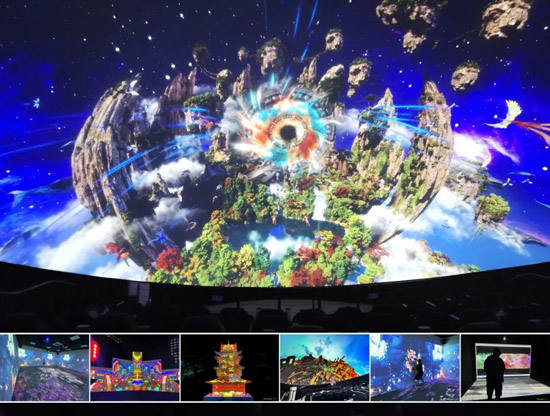 700平米展厅,六大空间,十二大场景,动感球幕影院,建筑投影,沉浸式互动空间,L型沉浸式虚拟现实协同工作系统,紧凑型CAVE,新一代飞行模拟器,透明显示,LED新一代技术和应用演示等前沿技术,潮流应用,与您共同探索。